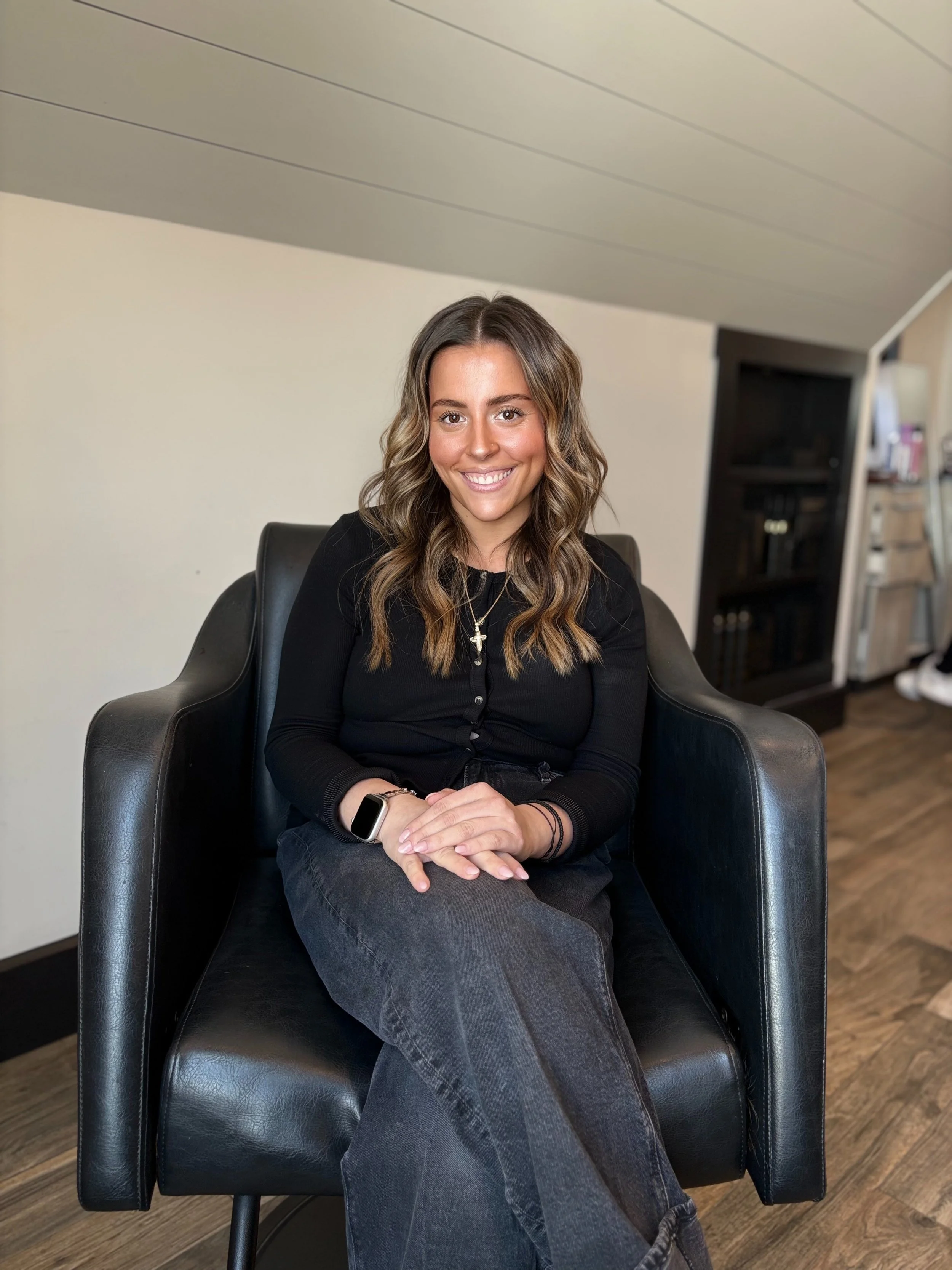 With over a decade of experience behind the chair, Kristyn specializes in women’s cuts, color, styling, and advanced smoothing treatments. Certified in Magic Sleek, Cezanne, Brazilian Blowout, and Lasio keratin, she combines technical skill with a passion for healthy, beautiful hair. Known for her attention to detail and thoughtful approach, Kristyn focuses on helping every client feel confident, heard, and excited about their look.